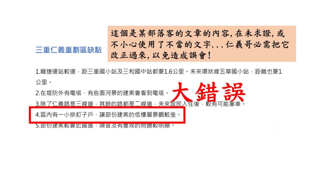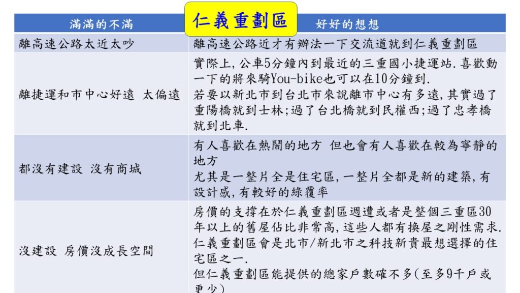 而這一切的源頭竟是對仁義重劃區本質/特色/定位等這些最基本層面的不了解,而產生後續這一連串的問題.