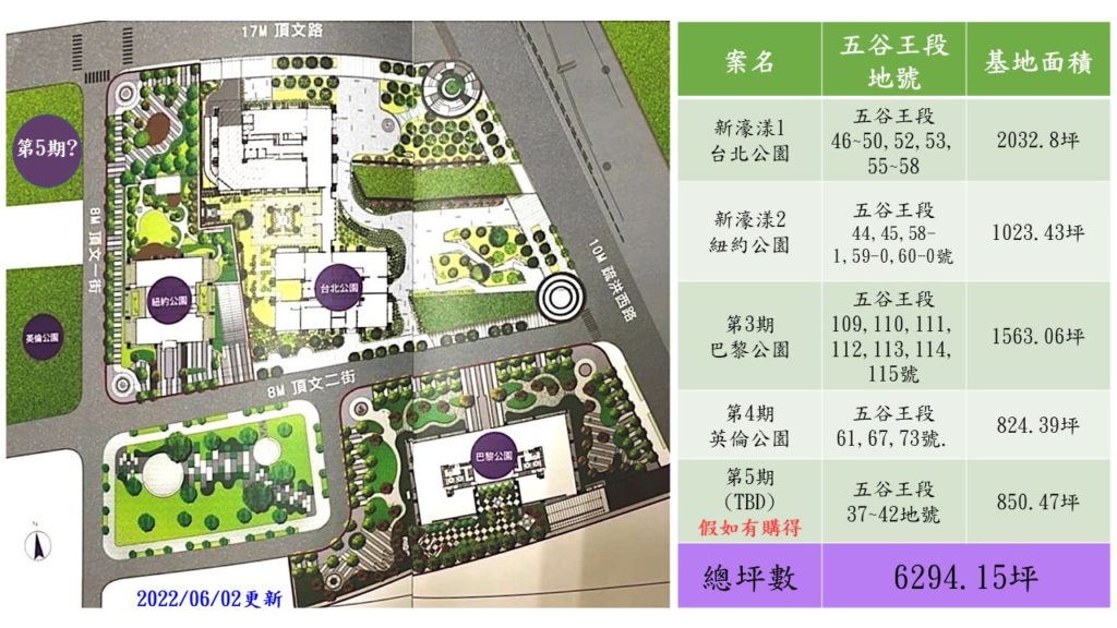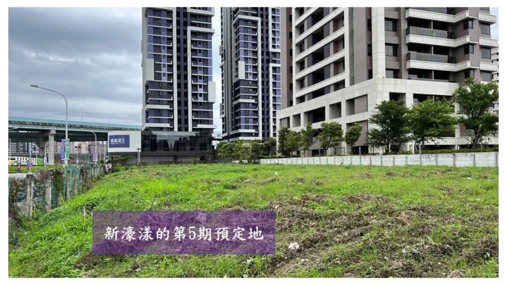 在新濠漾使用的廣告文宣裡,有特別標註全區有6000坪純住宅,67%的高綠覆. 因為第4期已經確定,若再把目前規劃購地處也加進來, 5個基地的總面基應該就會達到6千坪以上囉.