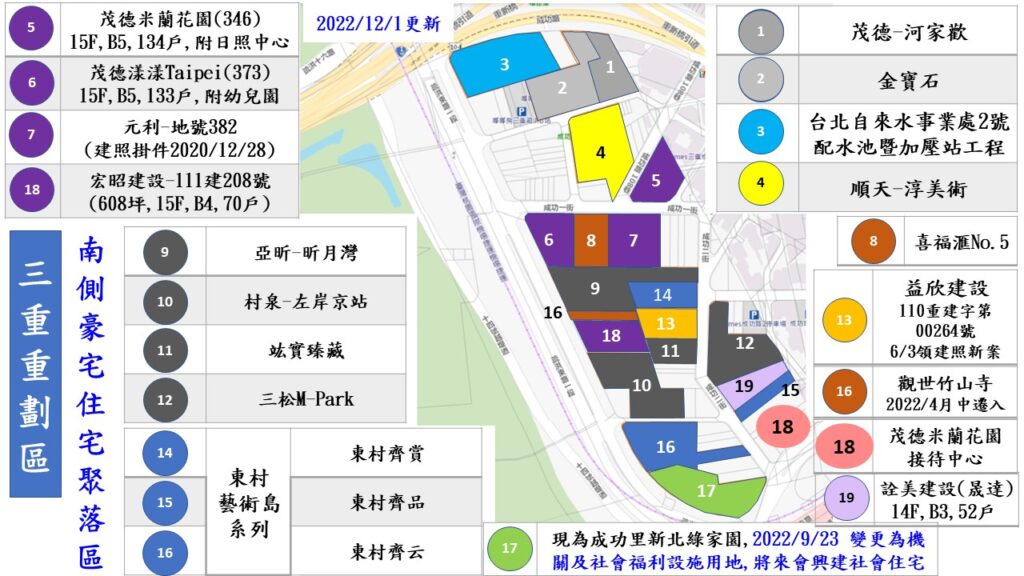 2022年在三重重劃區南側這區,感覺就是茂德的天下,因為它會在4月時,同時推出漾漾(由甲山林代銷),以及米蘭花園(由聯碩代銷);而米蘭花園接待中心這塊地也是被茂德買下.