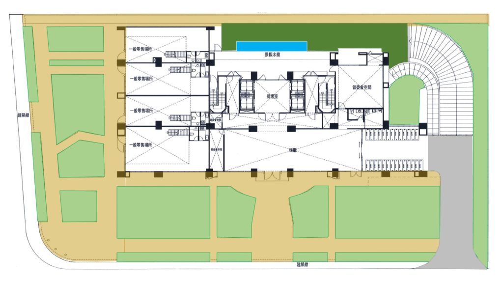 均有較大的退縮,變成開放式的人行空間;並且有大量的植栽.