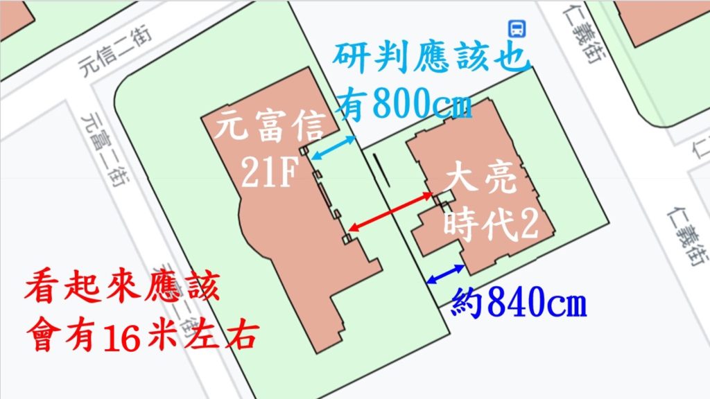 所以與元富信城鼎的棟距應該也會超過16米以上.
