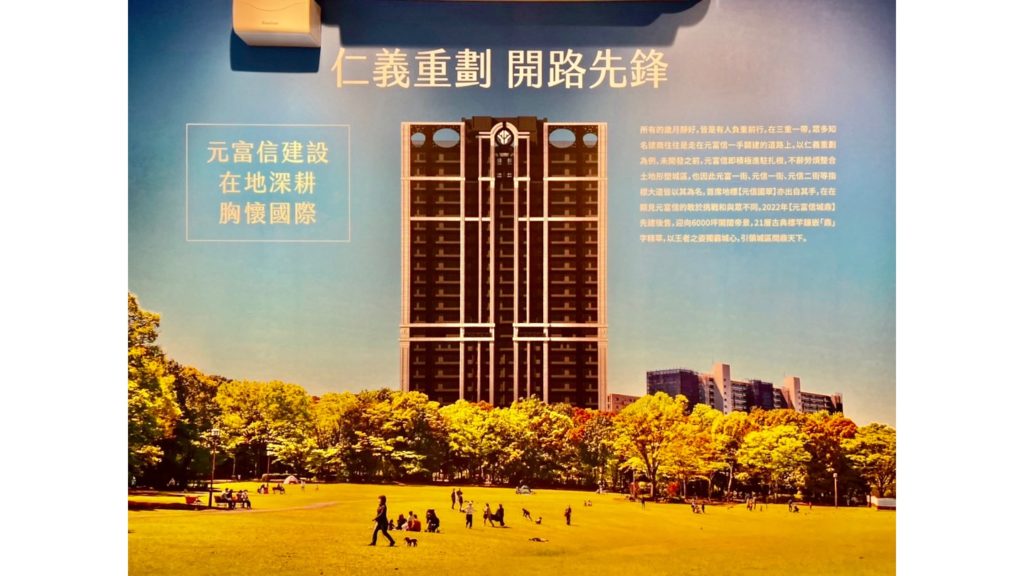 當仁義哥踏入它的簡易接待中心,看到入門口右邊的牆上,有一面建案示意廣告圖片,就知道原因了.