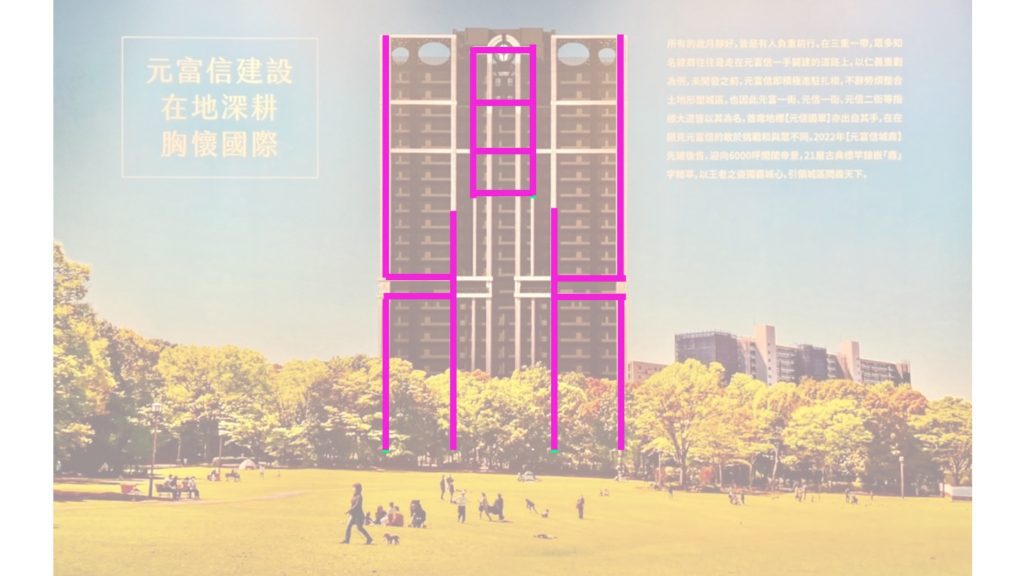 但因為元富信城鼎左右兩側剛好是鏡像相反的設計,