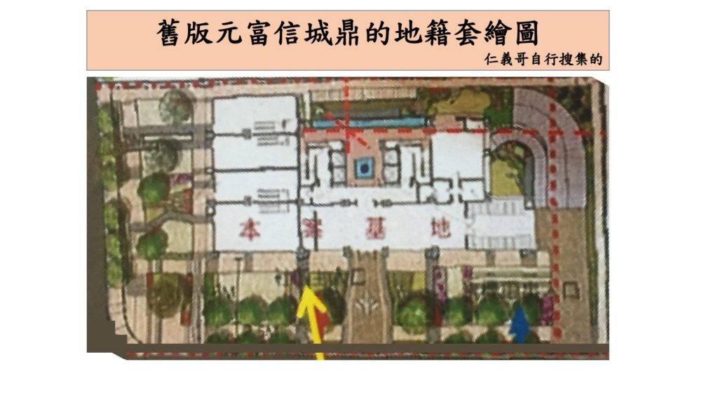 另外,從目前建築物地籍套繪地圖上來看,元利樂樺大樓蓋的位置會比較往仁義街和元信二街靠,