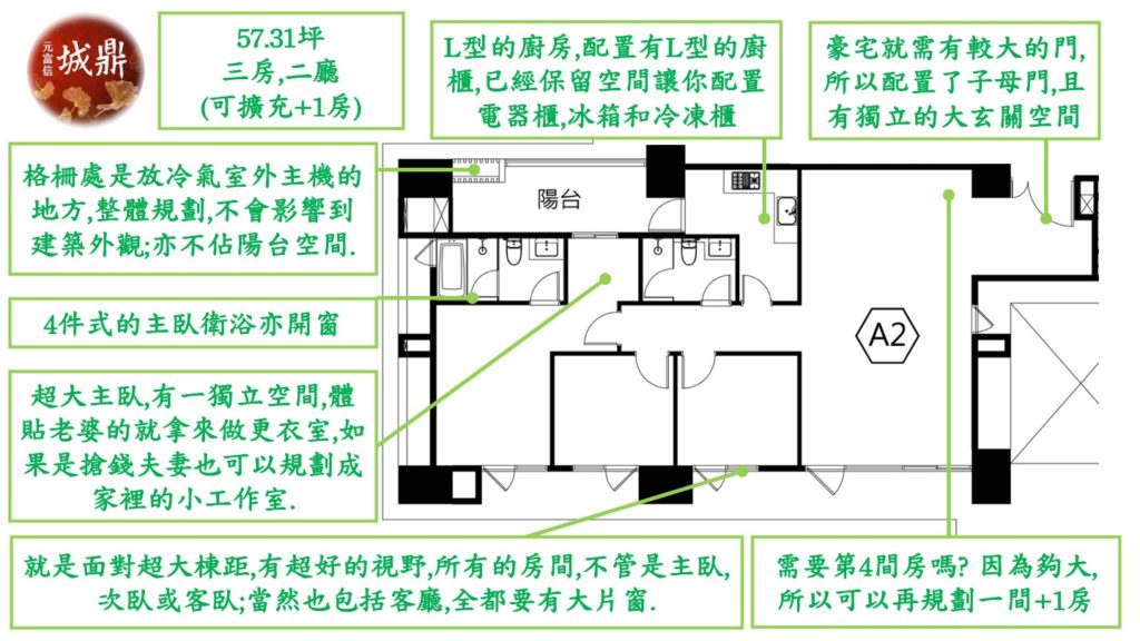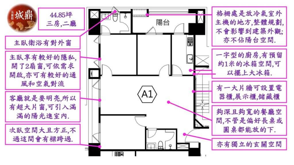 這裡就僅以A1和A2的格局做簡易說明.