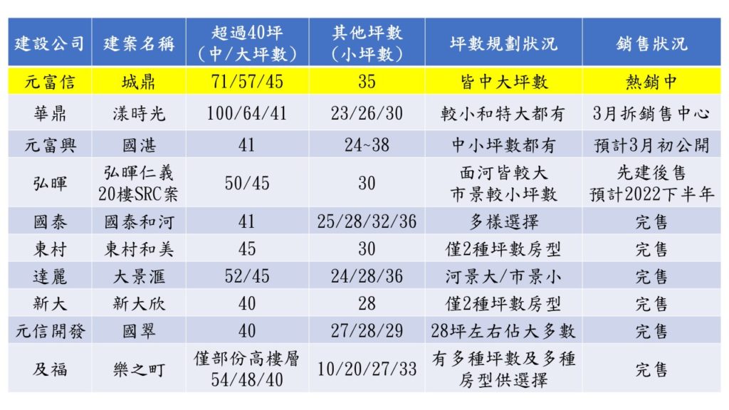 元富信城鼎後方二個案子,一個是成屋的大亮時代2,另一個是在3月準備公開的元利樂樺.