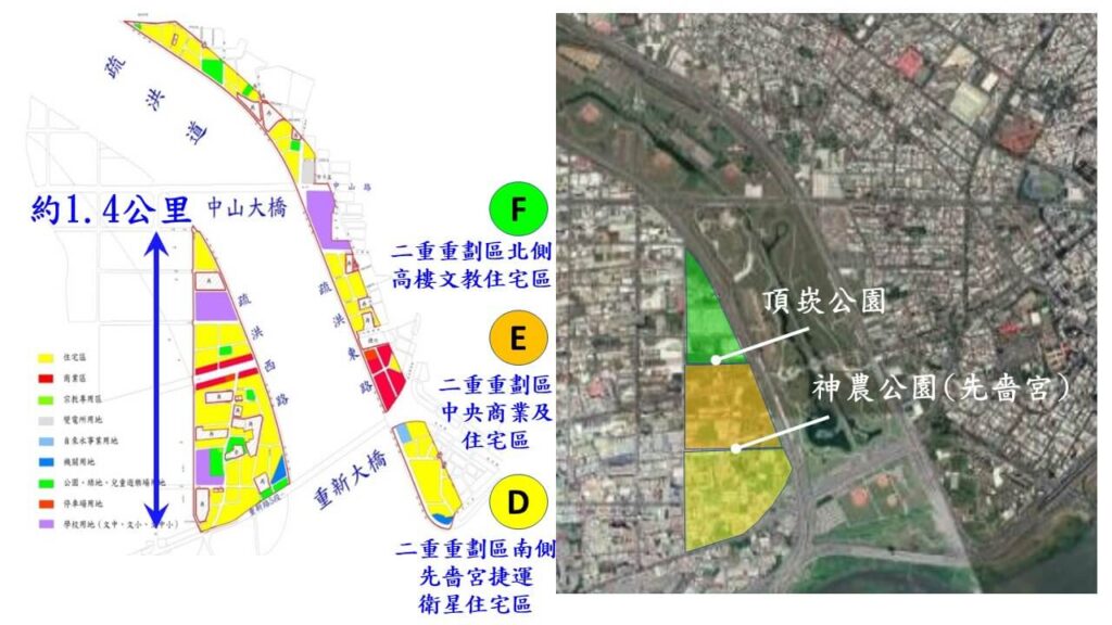 因為大都會公園左岸這側重劃區,南北縱深也有1.4公里,
