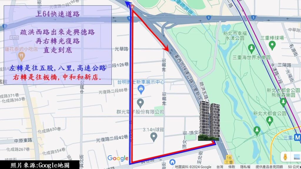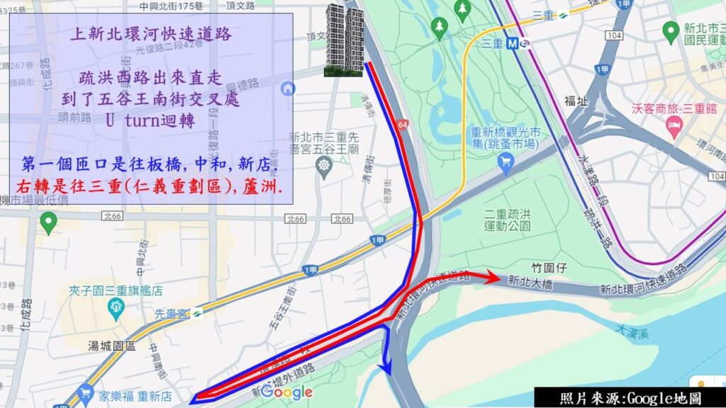 不過仁義哥會建議,若是往北要走高速公路,也可以先用估狗地圖看一下,有時,直接走三重交流道,會再快一點.