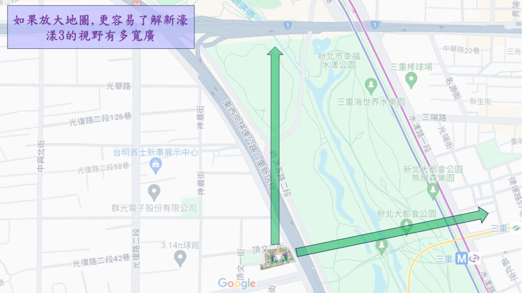1.在整個新北市最大的公園-大都會公園的旁邊,所以叫公園宅?
