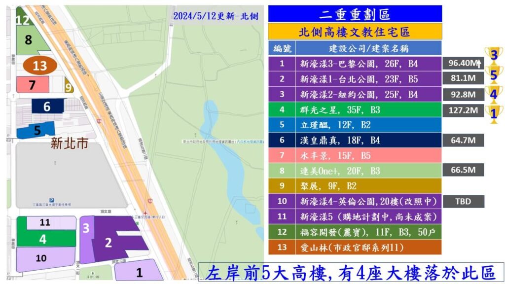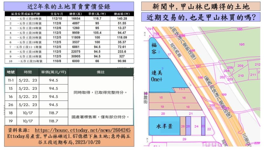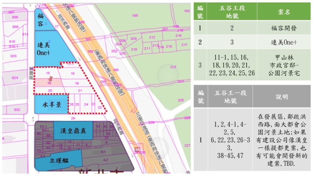 另外,幾乎要在整個左岸稱霸的甲山林/愛山林,針對北側剩餘的這邊總共12塊土地,包括11-1,15,16,18~26,