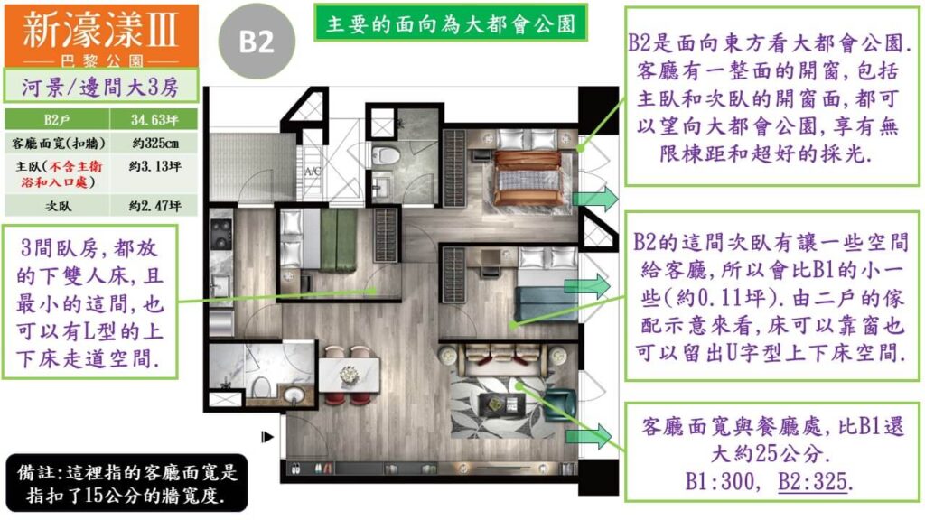 新濠漾3-巴黎公園在面大都會公園/河景的最大戶別也才34~36坪左右,