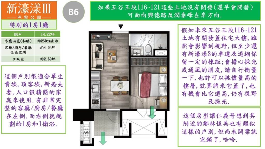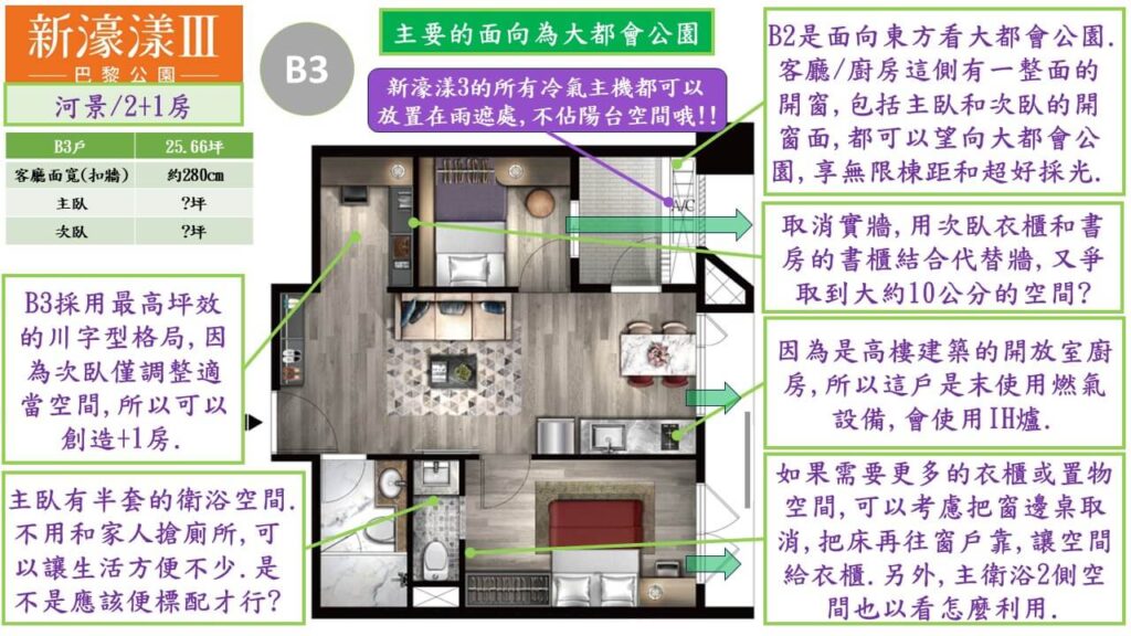若整體來看,新濠漾3-巴黎公園有規劃滿多是25坪以下的房子,就算是偏小坪數的房子.