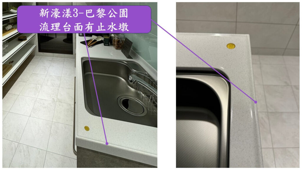 廚房的設備也採用Cleanup的系統,廚具的流理台面還有特別設計止水墩,比較不易讓水溢出到地面,