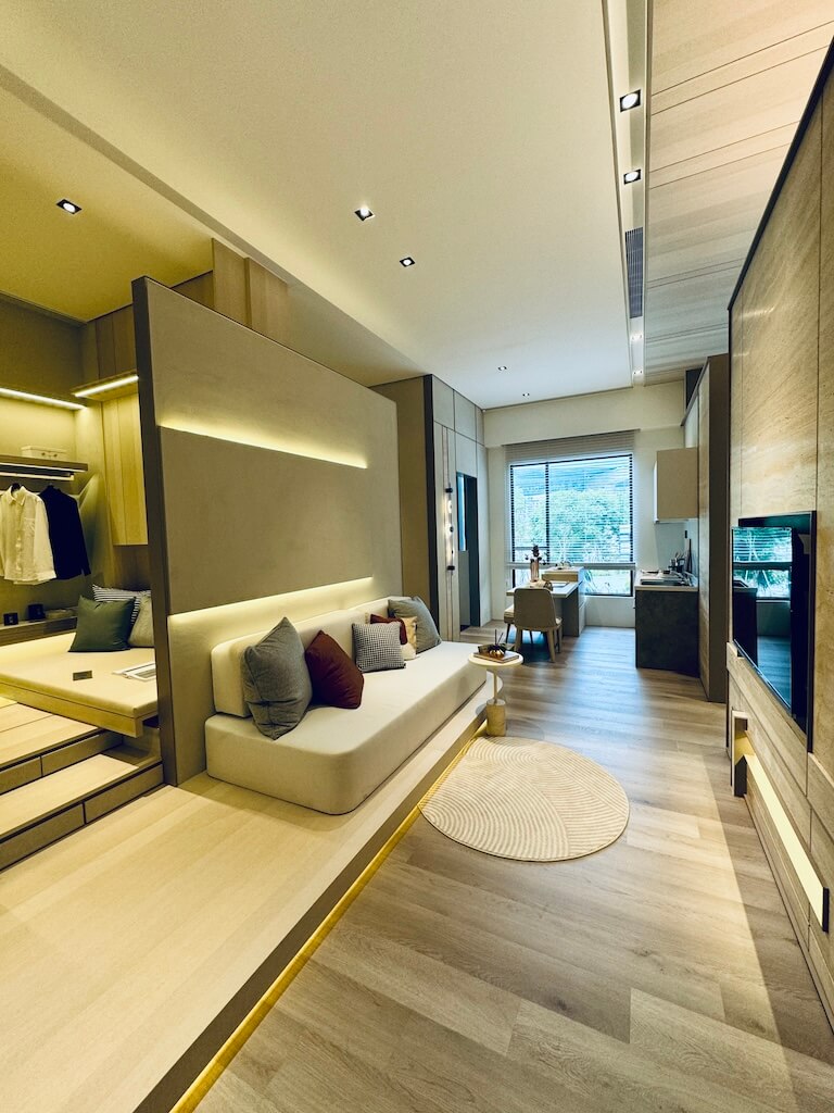 但為了讓空間不要真的那麼局限,所以能在樓層挑高上做到3米6,也會有降低空間小或壓迫感的實際效果.