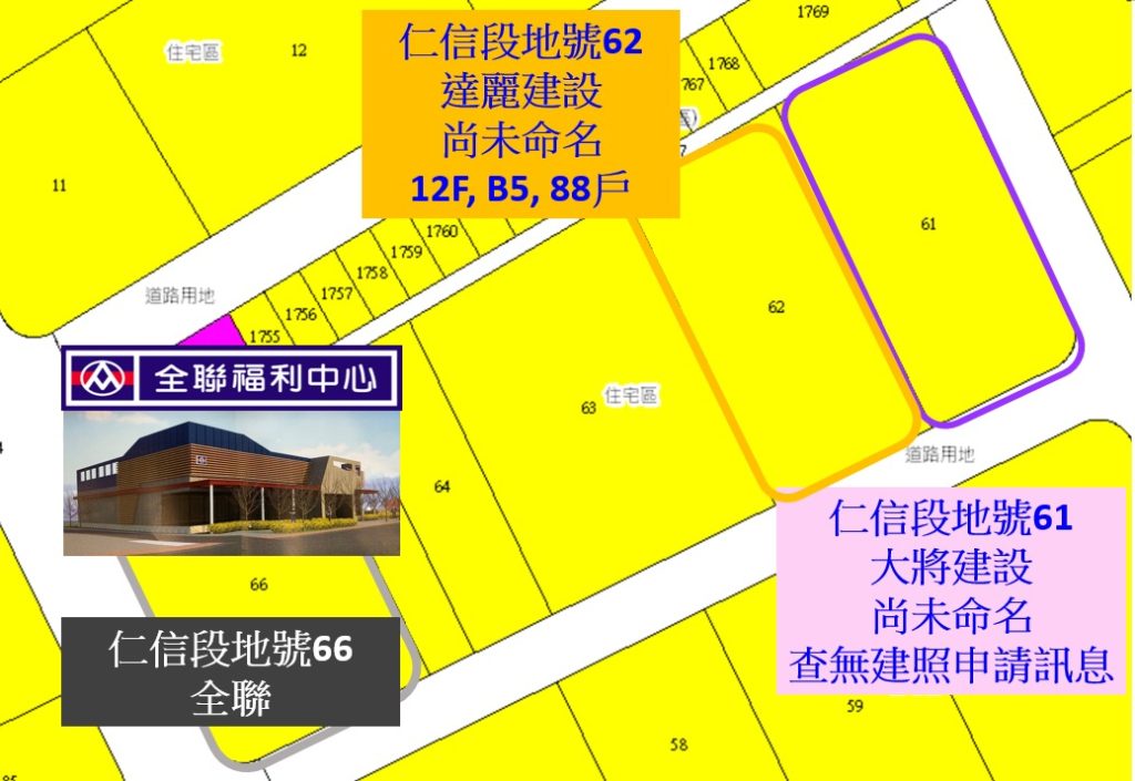 另外,仁義哥也要跟大家說聲抱歉,之前有誤傳資訊. 仁信段88號這塊地,就是在大亮時代2旁靠近綠軸步道的土地,因為也是參考了之前其他建設公司或代銷給的廣告DM,誤值成是知森堂的(原仁義首案仁仁愛的廣告還沒標示任何建商的,但後來日日東森,小品川,大亮建設,就都有標示是知森堂的),實際上是別的私人土地. 所以,在此也提出更正.