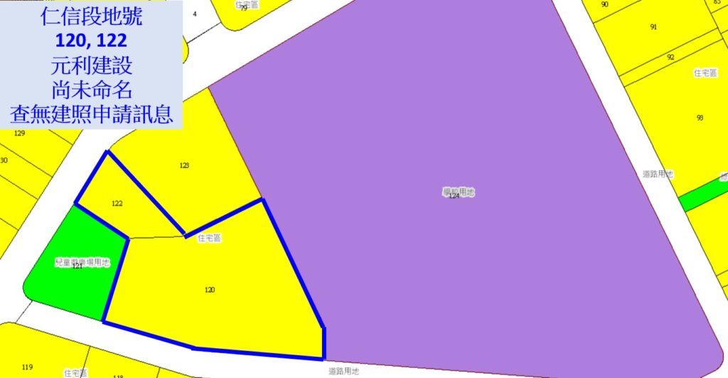 仁義哥在介紹元利樂樺的文章時,就有跟大家報告樂樺在仁義重劃區共有4塊基地,所以應該會有四個案子會陸續推出. 這裡也把他們的其他3個基地位置標示出來.