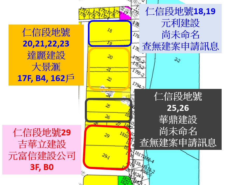 本文僅就不同地號,各建商擁有建案狀況以圖的方式呈現,