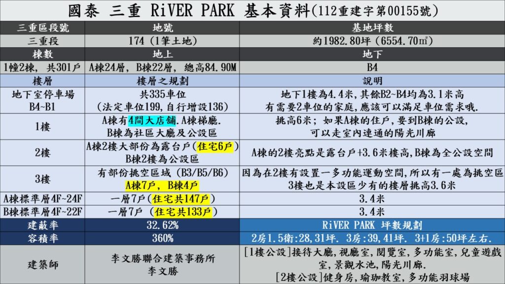 仁義哥對於一些新的建案,都有做一些功課研究一下,所以當初知道國泰在三重有這個案子時,就有針對其建照內容,對RiVER PARK有些初步的了解.
