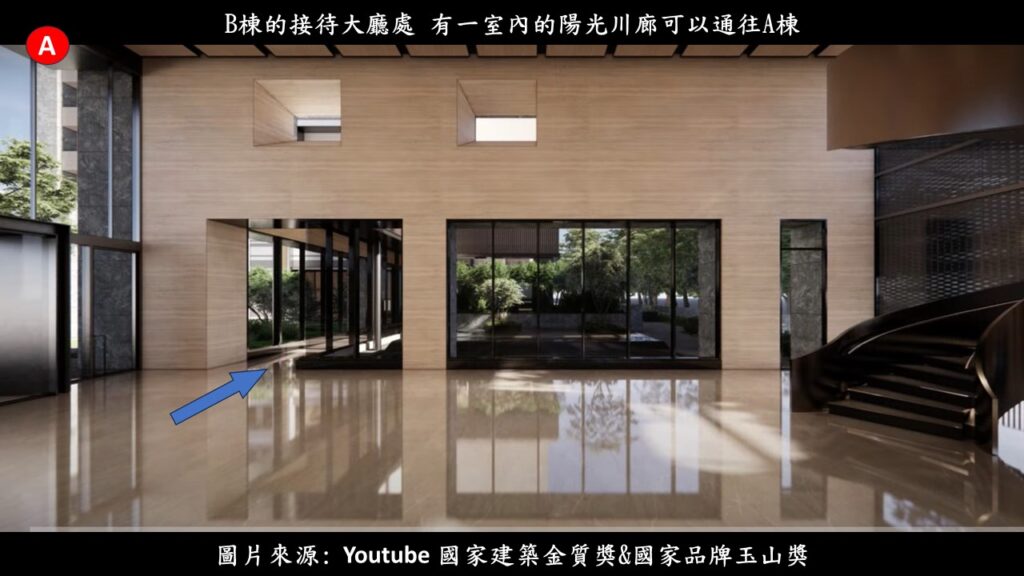 朋友的家是在A棟,但因為朋友想先帶著仁義哥看一下他們社區厲害的公設,所以,我們就由B棟的大廳入口進入.