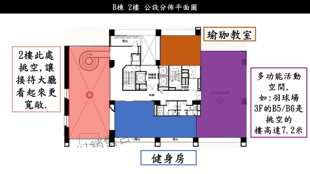 接著來到2樓,這裡的都是動態的公設,包括一間健身房,一間瑜珈教室.