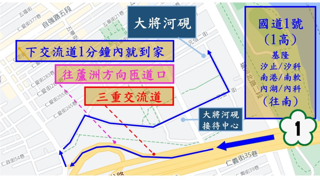 位於仁義街與元信一街交叉路口,也剛好在元利樂樺接待中心的正對面.