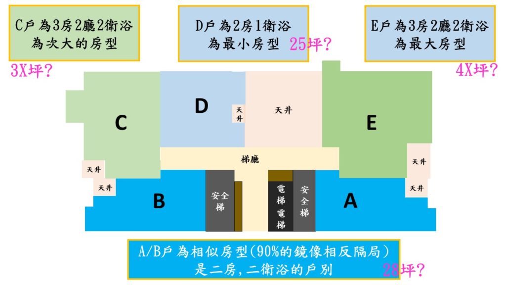 因為完全沒有每戶別的坪數資訊,所以下面的坪數都還是問號,之後有確定再補上吧.