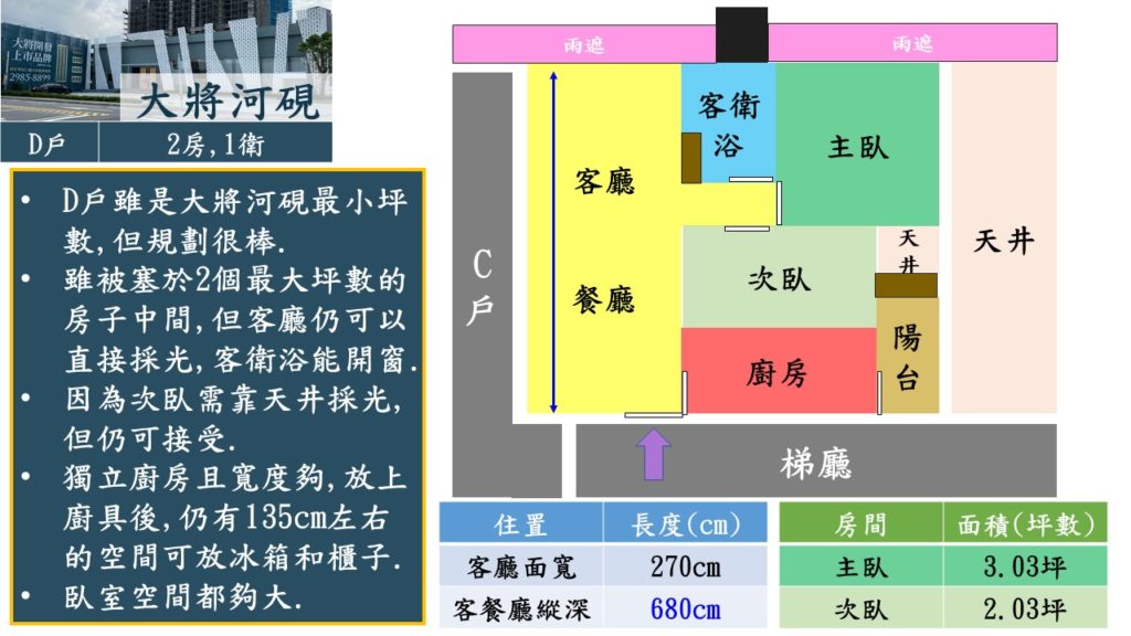 而位於其中間則是本案最小坪數,僅為2房1衛規劃.