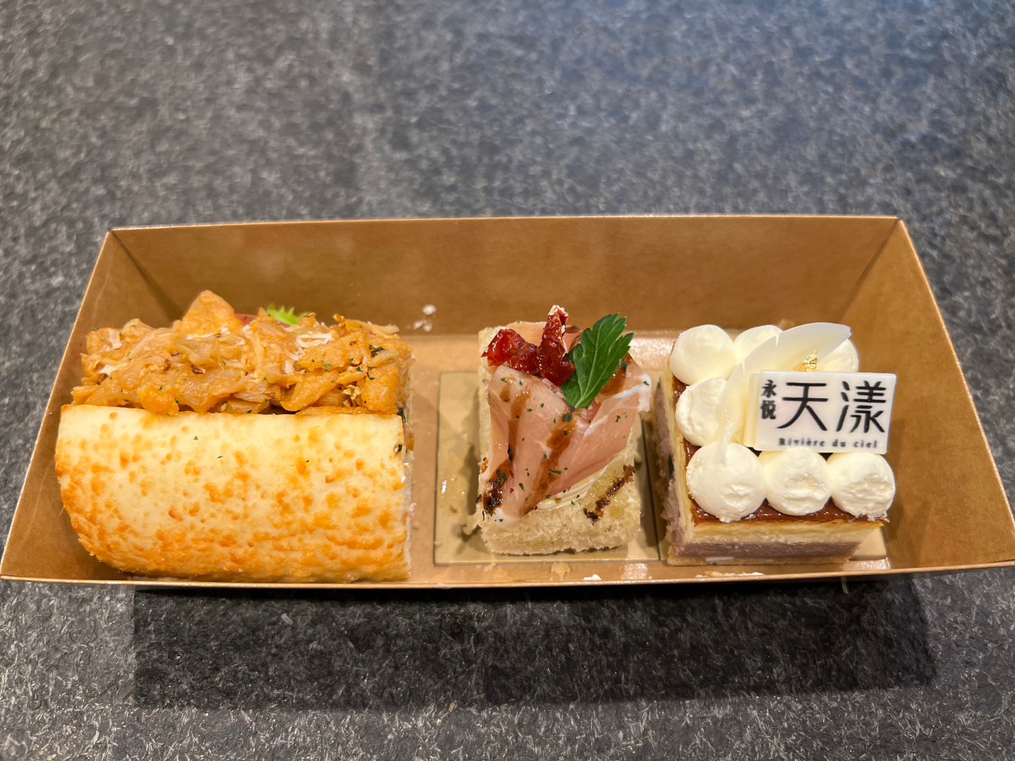小點心十分的精緻,上面還有印上永悅天漾的白巧克力!