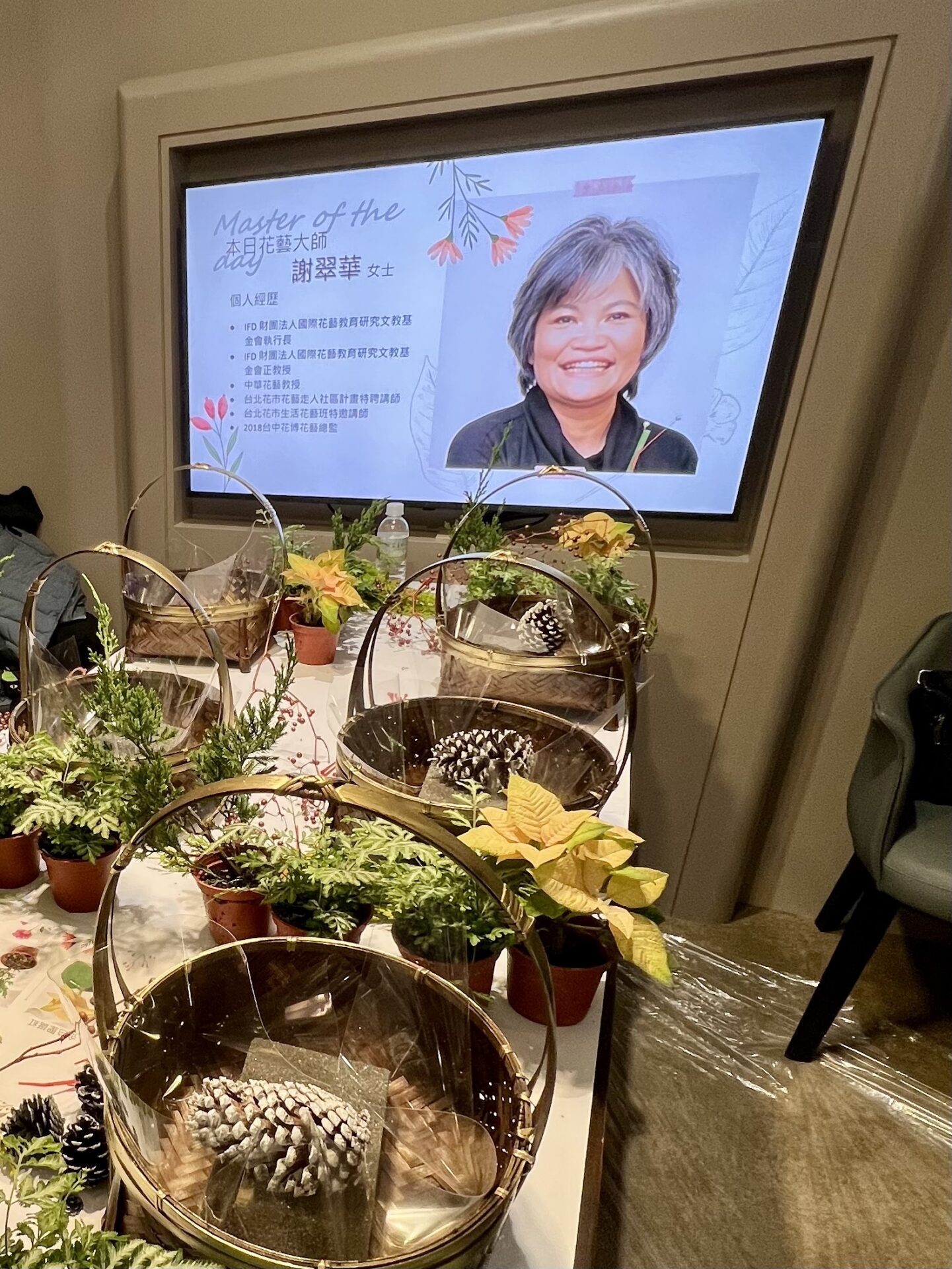 今日是由國際花藝教育研究文教基金會執行長謝翠華老師來教導大家,