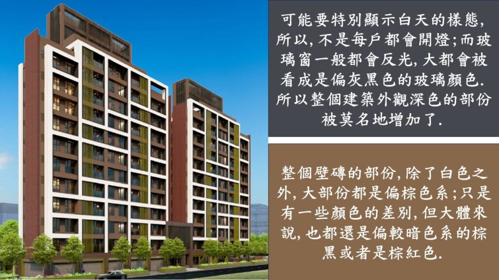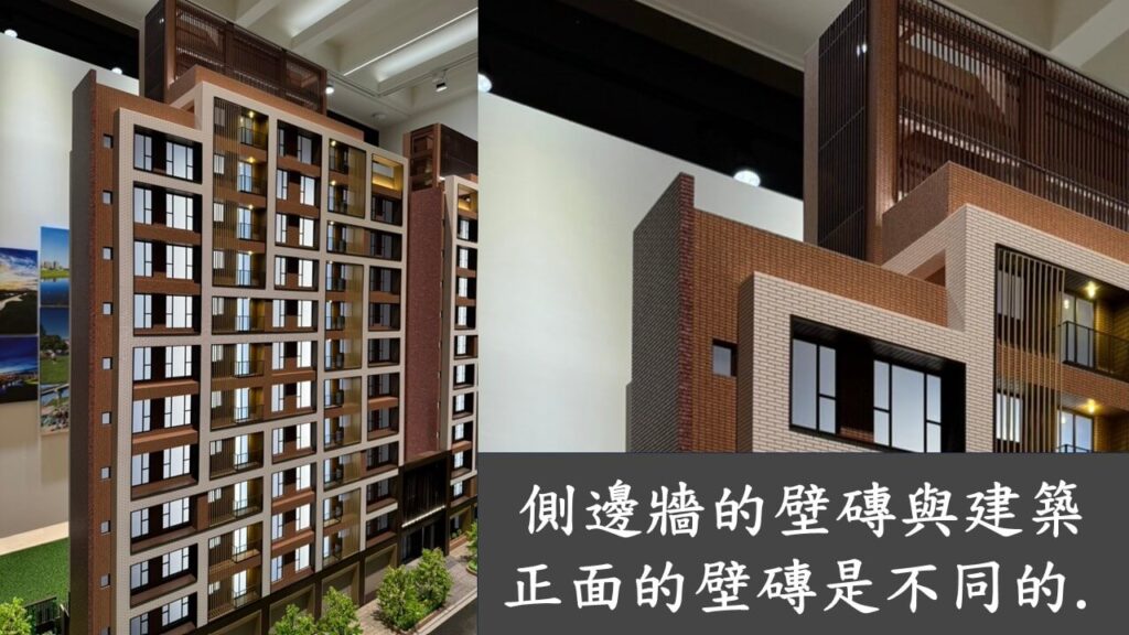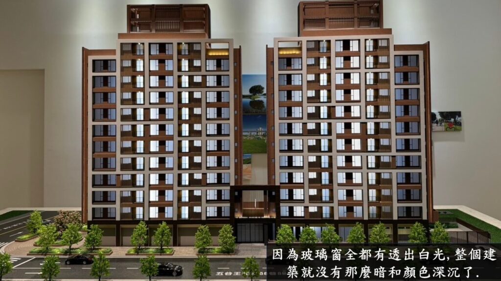 但實際看到建築模型,可能是每戶的玻璃都有點燈,呈現亮白色,所以建築看起來就沒那麼沉重,