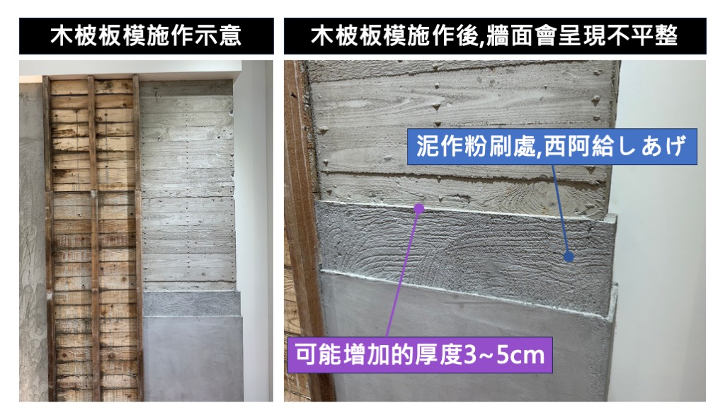 另一方面,為了結構上能夠更札實,不要因為木板模施作不良而有爆漿,需重新修補,若處理不好,
