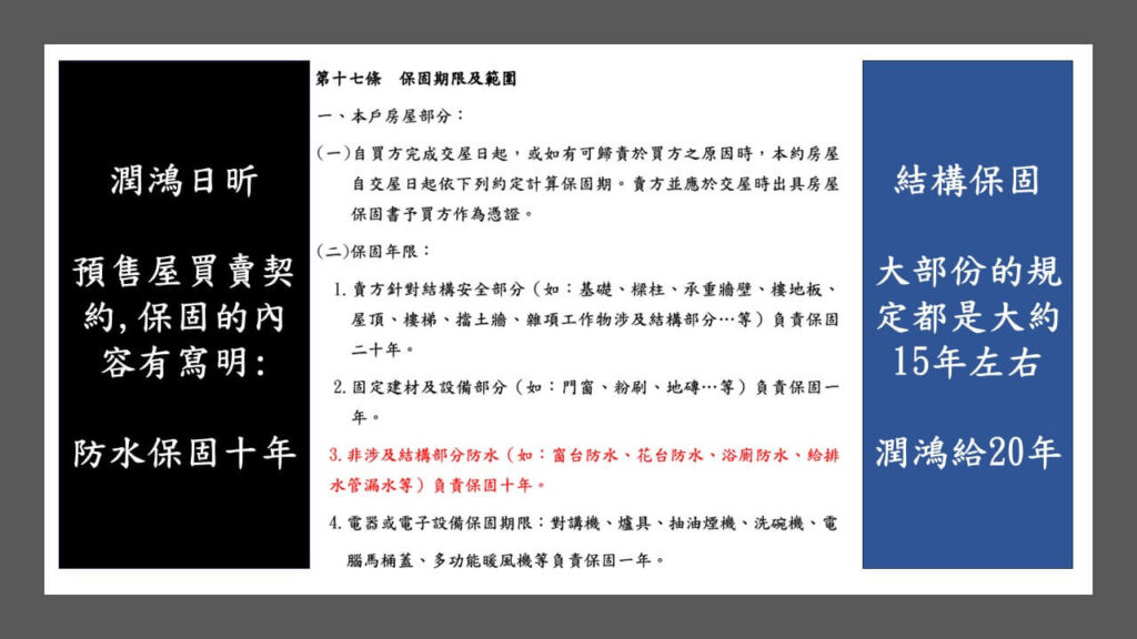 前面所有的內容,是仁義哥認為要強調一下,潤鴻這間公司及其老闆主要的企業核心對建築的理念為何? 所以就直接講到了他們非常重視的防水,如何做出不容易漏水的好建築.