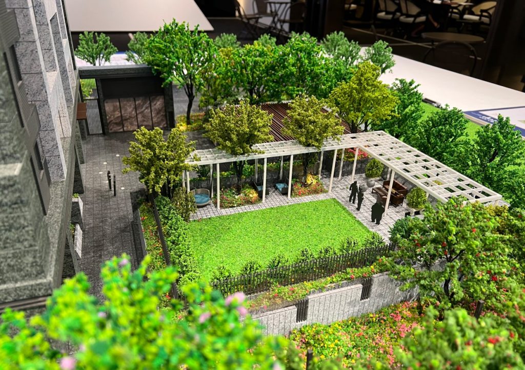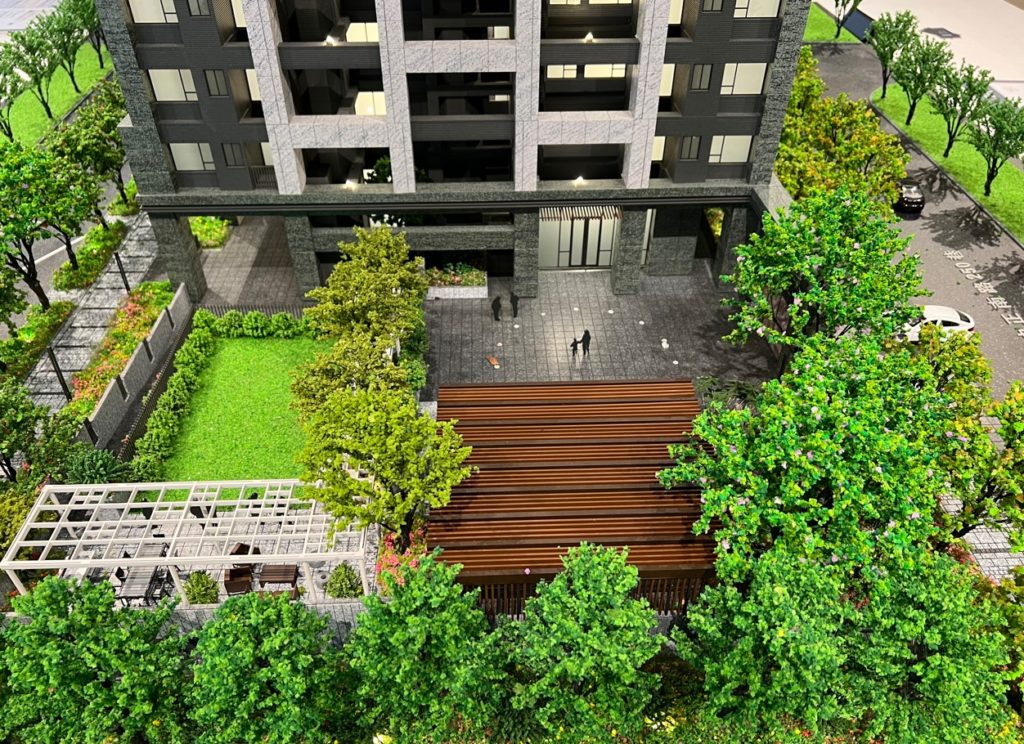 純住宅的設計,除了二進式門廳的規劃,也有透過植栽和圍柵,增加社區內的隱私及安全.