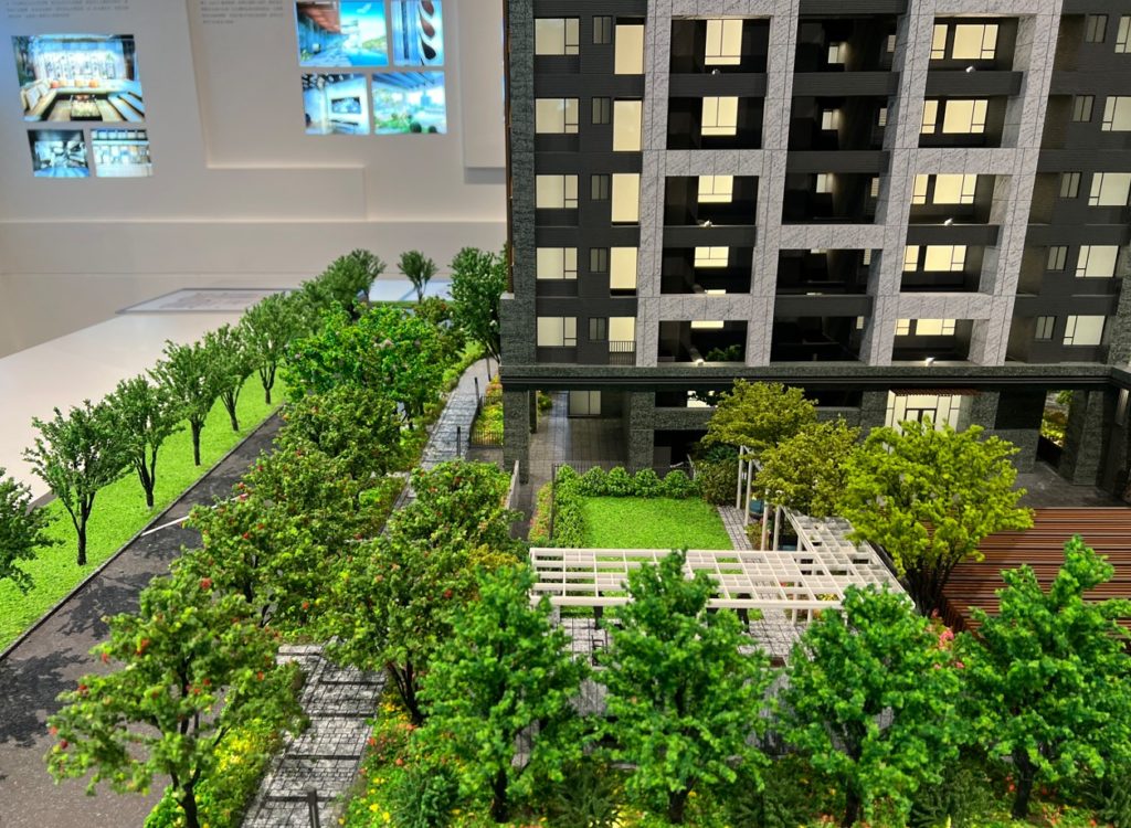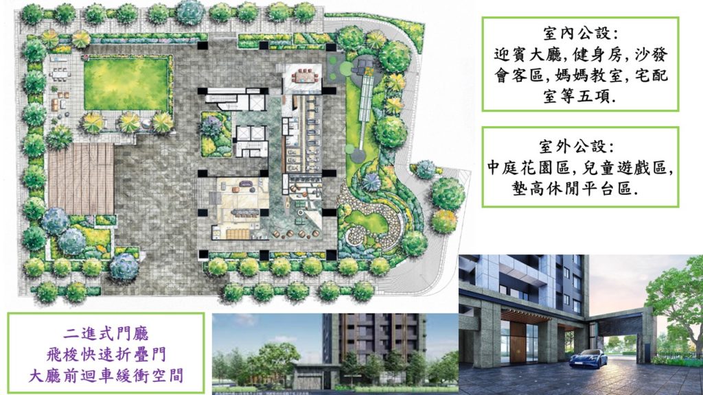 不但是無店舖的純住宅規劃,也有豪宅都重視的隱私及安全配置,例如二進式門廳,全區外圍的植栽與圍籬來區分社區內外.