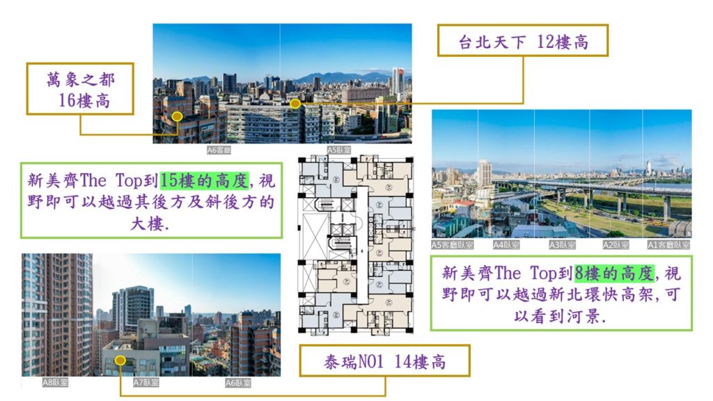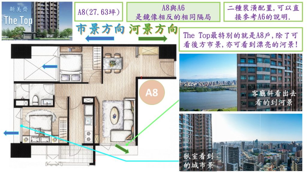 新美齊The Top不管是那一戶別,只要樓層稍高一些,全都有景觀.擁有城市景,無敵河景.