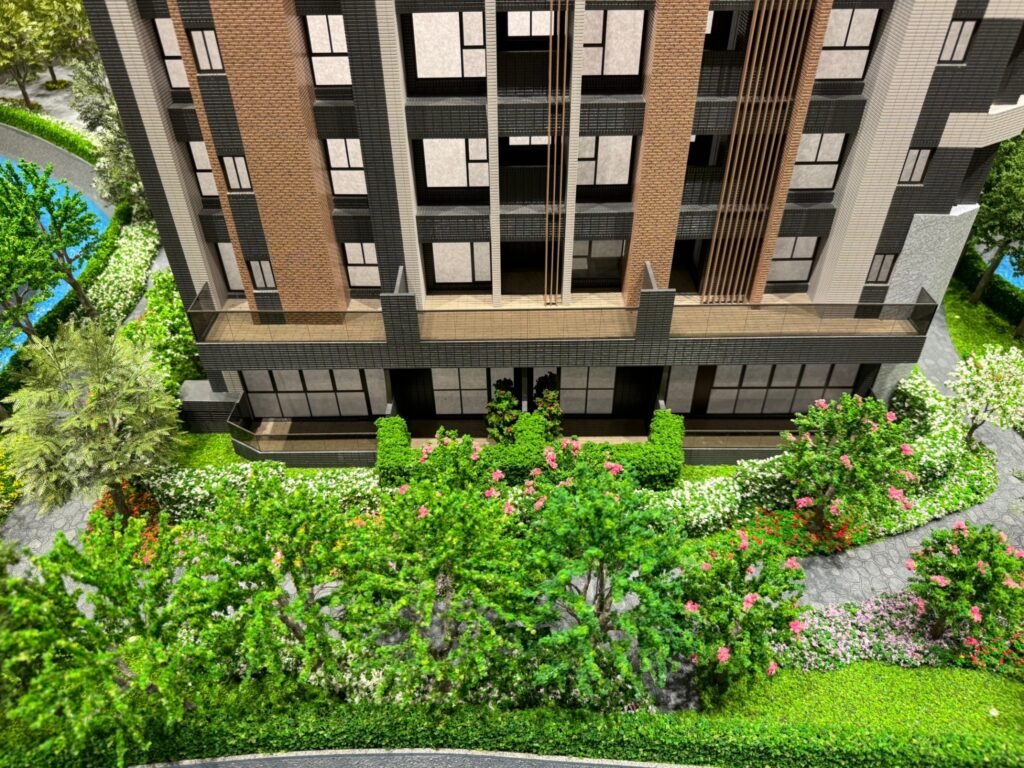 這個案子的案名是由『森原』建設想要透過大『樹』造屋的概念,來創造一座森態系莊園.即然是要讓住戶可以感受到森林生態的居住環境,那麼就要有足夠的空間,也要有許多樹,才能達成這樣的目的.