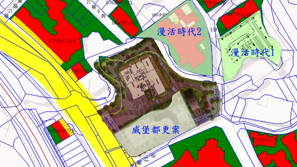 另外,其鄰地的原有建築,均被判定為海砂屋,除了目前已經在銷售興建的漫活時代1期/2期,均在水美慕河的後方.另有海鷗段768等15筆土地正由威堡建設進行的都更案,也在今年的1月5日核定計劃並公告,位置就緊鄰著水美慕河隔壁.