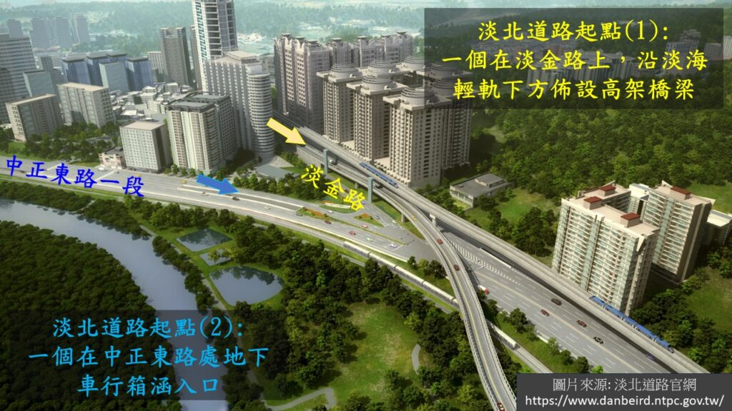 而最新的消息則是對於河岸生態影響較小的『淡北道路』,在去年七月決標後,也預計在今年年初開始動工,預計施工時間為5年多,所以大概要等到2029年下半年才會完工啟用.若要由淡水舊區及淡海新市鎮往關渡,大肚路,士北科等即可透過淡北道路的分流直達,來稍緩原本只有一條道路要通北市又要往關渡橋的窘境.