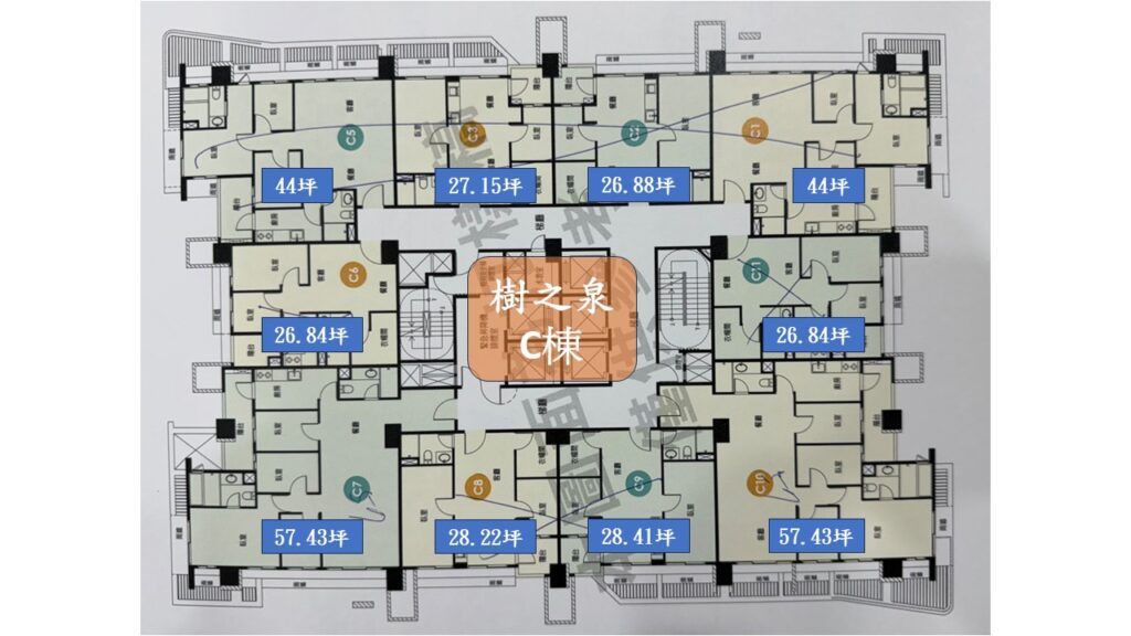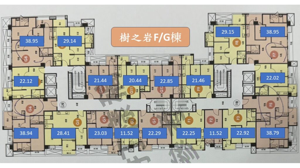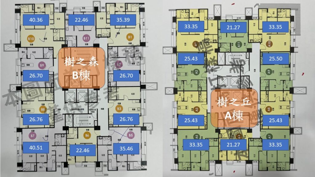 以樹之泉來說,目前只剩下最大坪數57坪的戶別.樹之岩也是剩下邊間37~38坪的戶別. 樹之森則是剩下40坪的B7及B10.