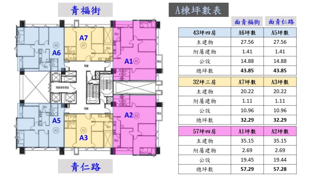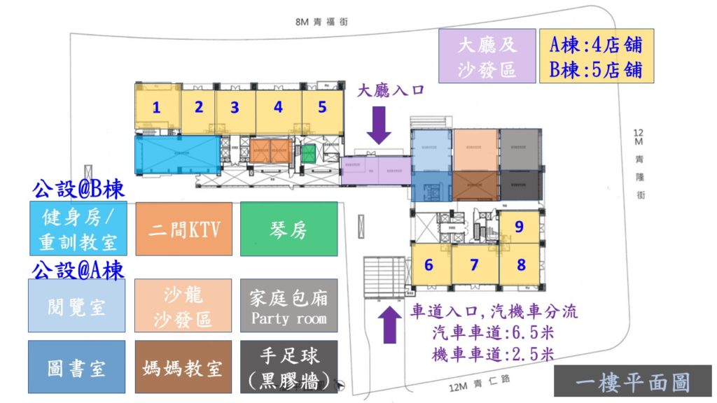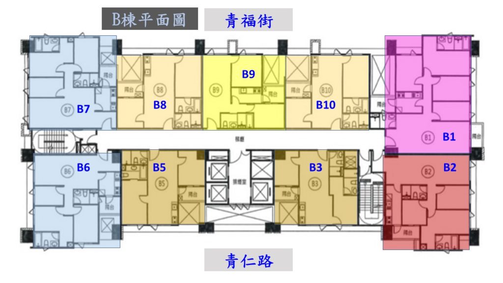 分別為A棟較為靠近後方青仁路,以及B棟較為靠近前方的青福街,