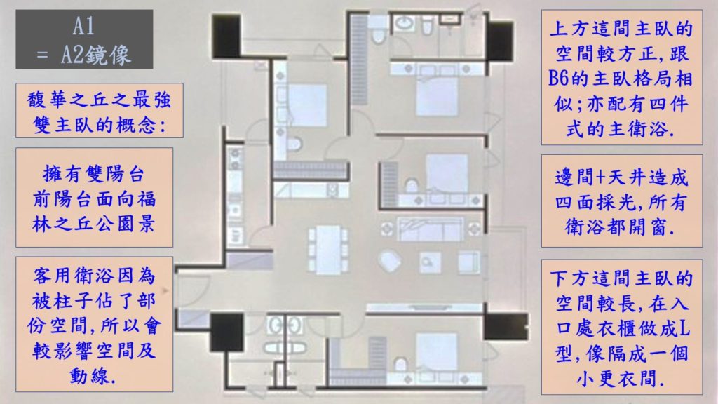 A1戶型為4房格局,在這邊比較需要特別點出的是,