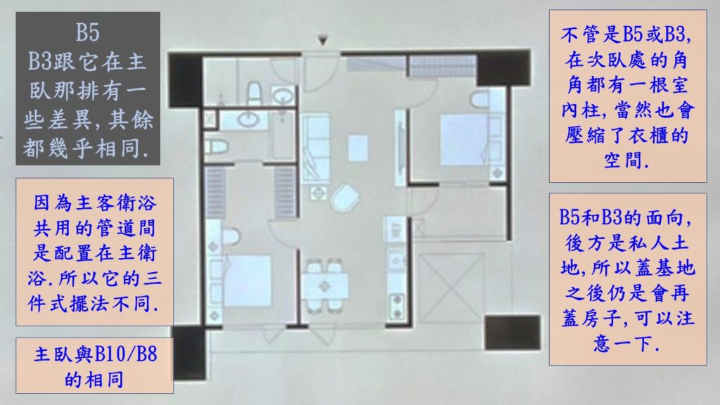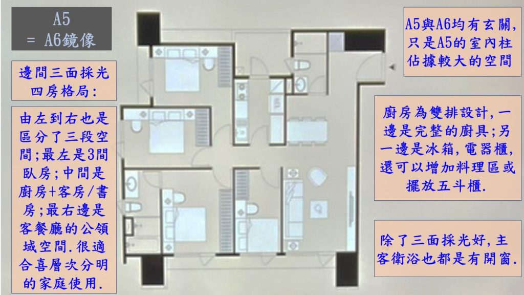 因為A棟是採用對的設計因此可以針對三種格局來看,