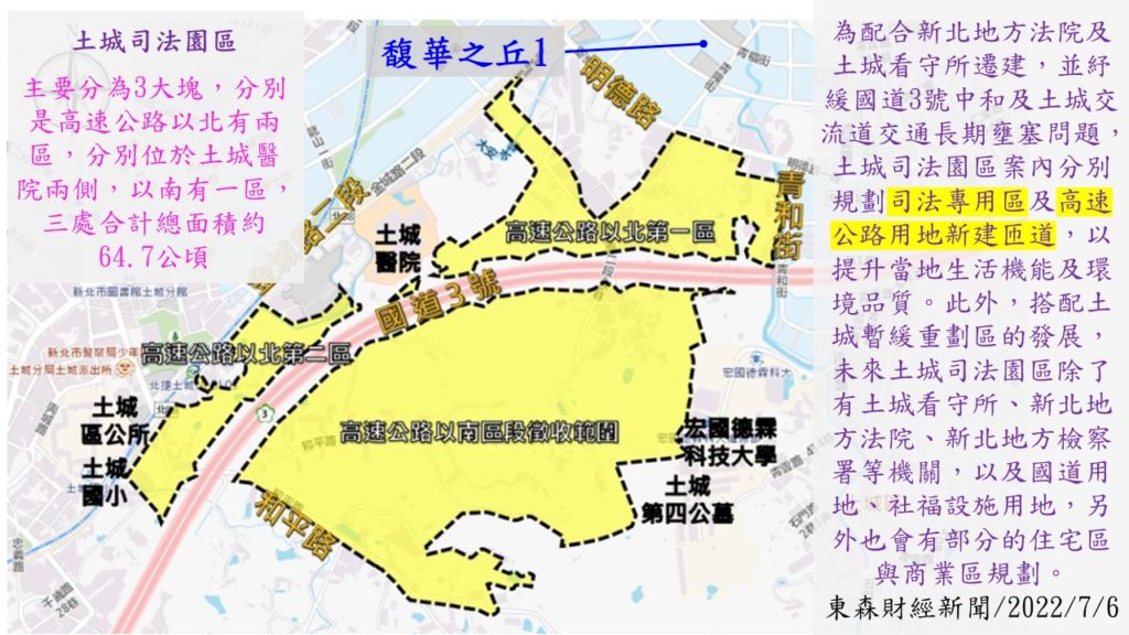 鄰近土城暫緩重劃區最重要的二個建設,其一是土城要成立全國第一個司法園區. 並且開始區段徵收作業.