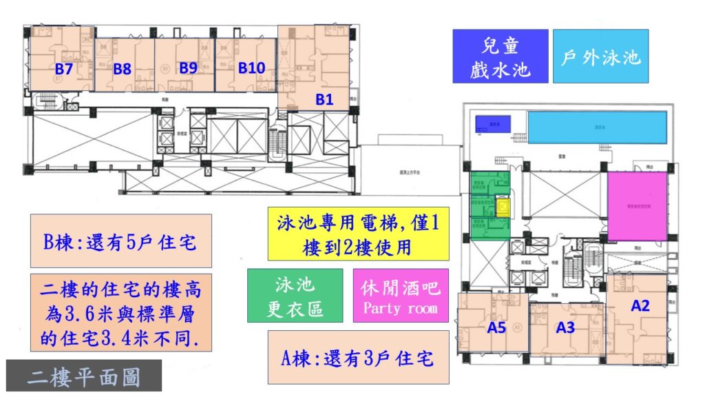 與A棟不同的是,B動大多是2房的格局,一層就佔了5戶,