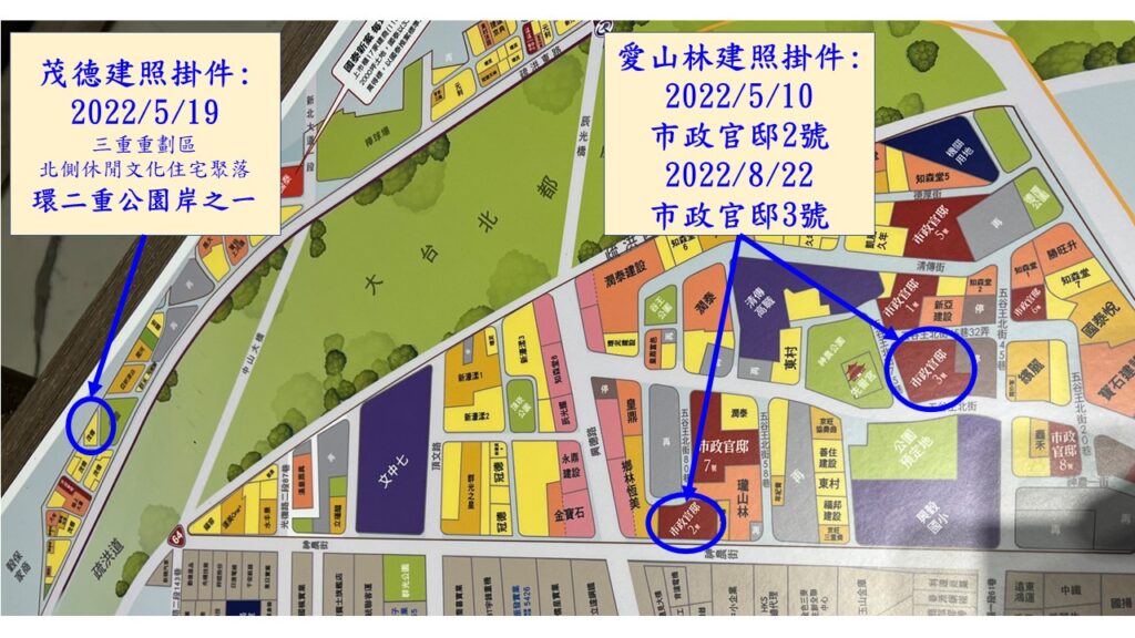 二重疏洪二側重劃區分別在左右岸大肆獵地的甲山林及茂德,均有新的建照掛件送審.