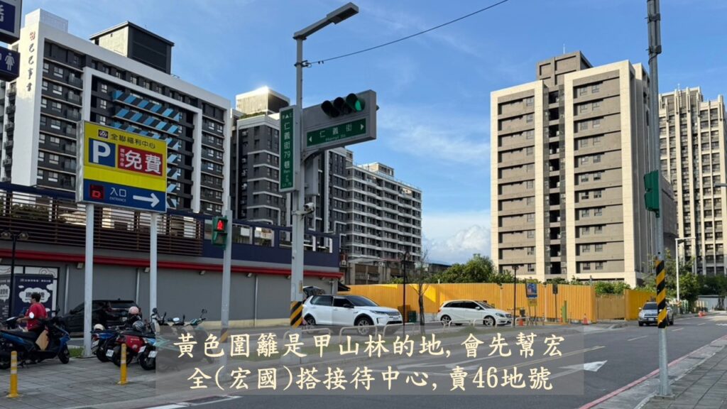 46地號,由宏國齊下宏全建設推出的案子,會交由甲山林銷售.所以甲山林當然就是把銷售中心搭建在它未來會開發案子的64及65地號上.