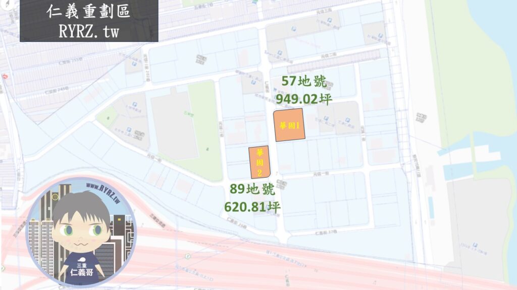 而緊隨在後的就是華固一口氣買下了2塊土地,分別是57與89二個地號,總共的面積達到1569.82坪.