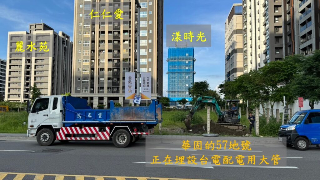 可以看到今天有施工單位來現場埋下台電用電的大管.