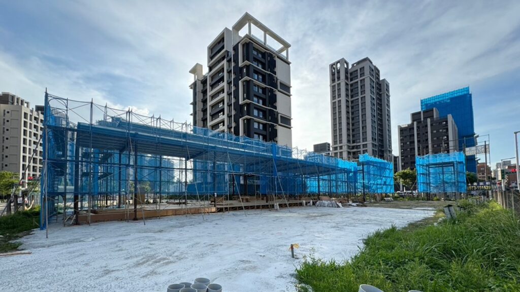 而也是華固買下的89地號(約620.81坪),正在進行接待中心搭建.